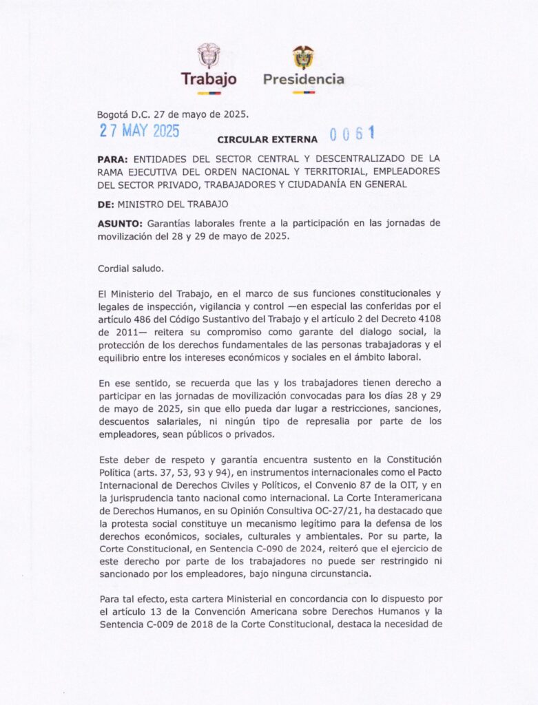 Garantias laborales frente a la participacion en las jornadas de movilizacion 28 y 29 de mayo de 2025