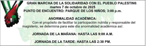 Se ha autorizado anormalidad académica para facilitar la participación (Jornada Mañana: hasta 9:00 a.m.; Jornada Tarde: hasta 2:30 p.m.).