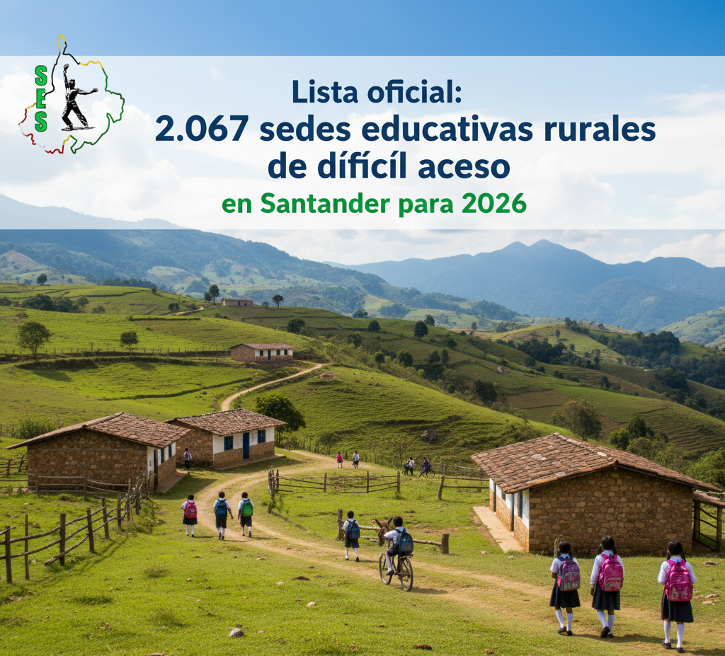 Ya está disponible la resolución que determina las 2.067 sedes educativas rurales ubicadas en zonas de difícil acceso en los municipios no certificados de Santander para el año 2026.